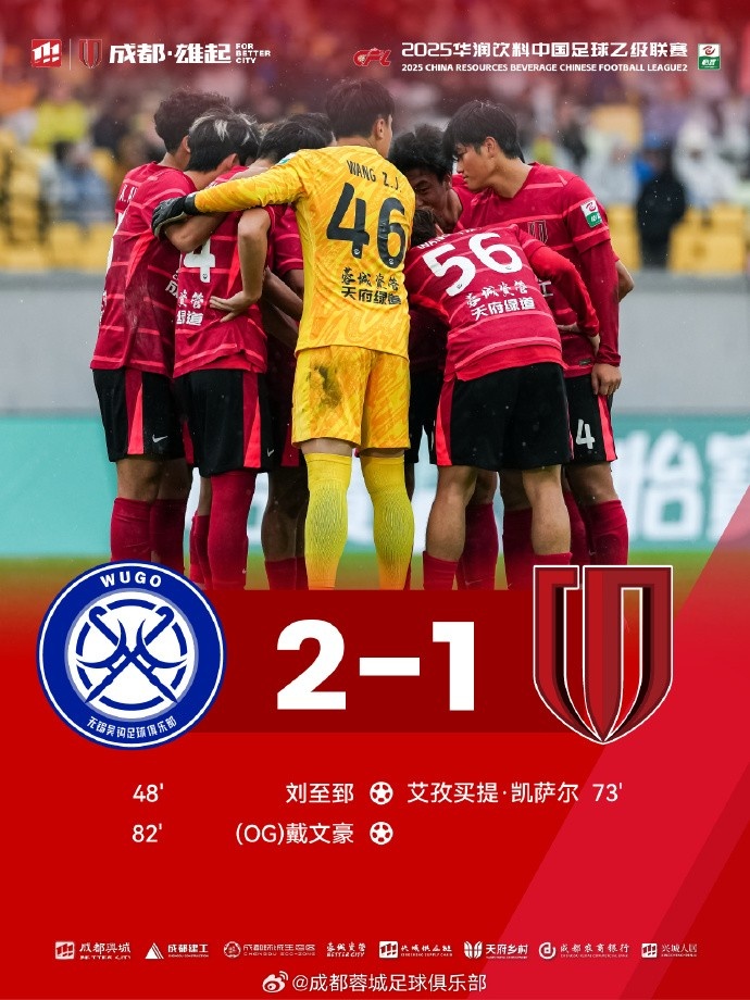 本日,2025华润饮料中乙联赛第29轮(决赛阶段第7轮),成齐蓉城B队客场挑战无锡吴钩。上半场,成齐蓉城B队主打刺眼反击,但未能创造出好的破门契机,半场比分定格为0-0。下半场第48分钟,敌手收拢契机先进一球。随后成齐蓉城B队伸开反击,第73分钟,艾孜买提·凯萨尔在周耘屹助攻下,30米开外打入一记天下波,扳平比分。比赛投入尾声阶段,戴文体众人在刺眼突围时失慎将球碰入球门。最终,成齐蓉城B队1-2无锡吴钩。