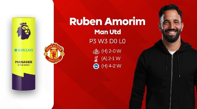 阿莫林在球迷投票和行家评审团的详尽评比中脱颖而出,打败了阿尔特塔(阿森纳)、埃梅里(阿斯顿维拉)和伊劳拉(伯恩茅斯)。