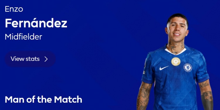本场比赛恩佐在临了技能破门锁定胜局,赛后他也当选英超官方球迷票选全场最好球员。