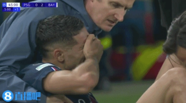 11月05日讯 欧冠巴黎vs拜仁上半场铁心前,阿什拉夫遭迪亚斯剪刀脚铲翻后坐地哀泣,径直伤退离场。