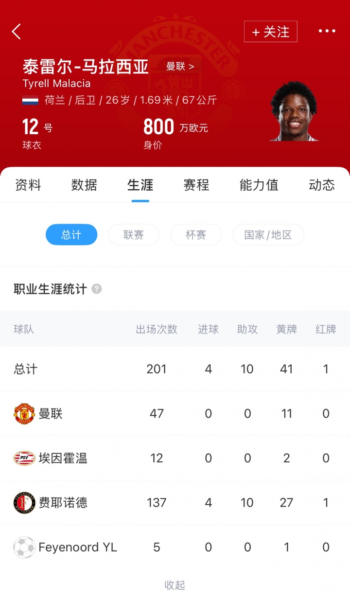 马拉西亚2022年加盟曼联,当今服从曼联3年共出场47次,0球0助拿到11张黄牌。