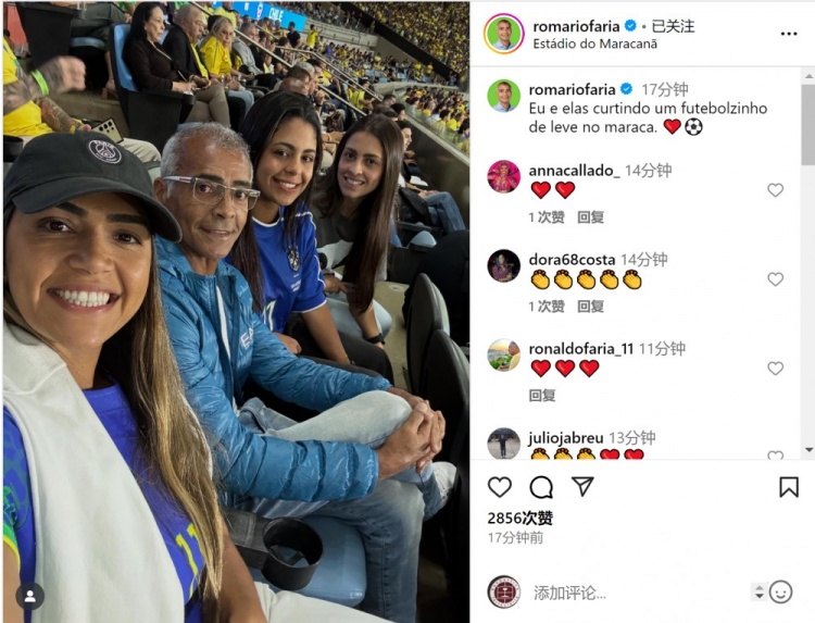 听说督战!罗马里奥晒与家东谈主现场不雅看巴西比赛像片