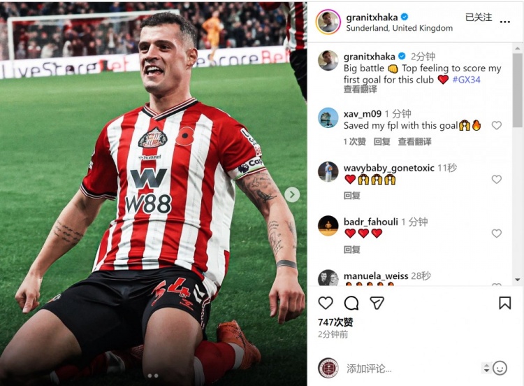 斩获桑德兰处子球!扎卡社媒:为这家俱乐部攻入首球的嗅觉太棒了