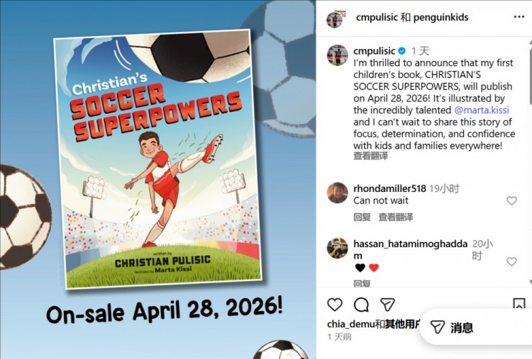 书名为《Christian’s Soccer Superpowers》(《普利西奇的足球超才智》),普利西奇这么解评话中的创作理念:“我念念敷陈一个故事,教唆年青读者,委果的超才智是自信。享受乐趣是成为委果冠军的关键。”