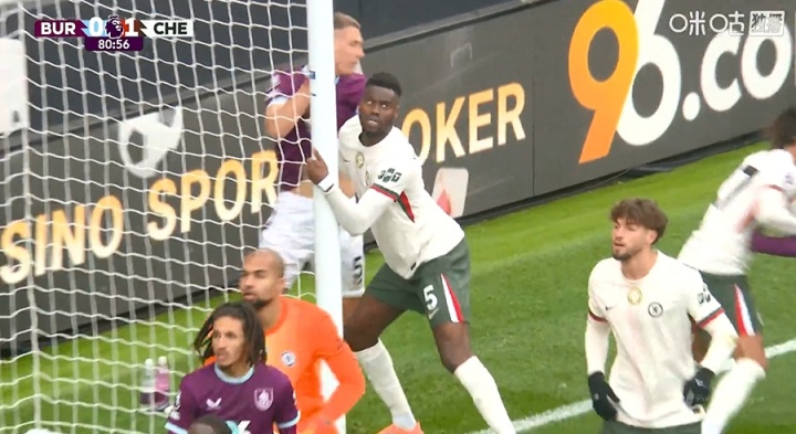 伯恩利角球契机,巴迪亚西勒角球珍重时将伯恩利球员挤出底线,被裁判出示黄牌。
