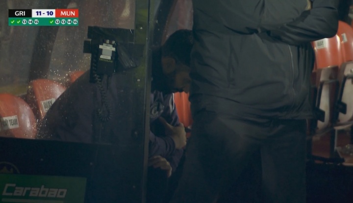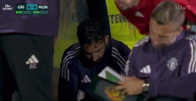 点球大战进行中时,镜头给到阿莫林,阿莫林坐在纯属席上,他低着头莫得看向场上。