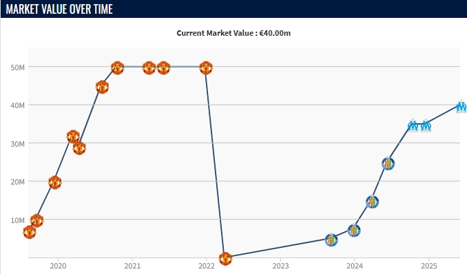 格林伍德现年23岁,巅峰身价曾达到5000万欧,但因场外事件一度无球可踢,德转身价也被清零。青木2023年复出,之后从曼联租出至赫塔费、2600万欧加盟马赛,迟缓打转身价,现为4000万欧,距离我方的巅峰身价仅有1000万差距。