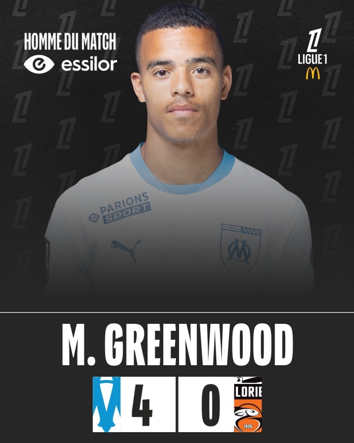 09月13日讯 法甲第4轮,马赛主场4-0大捷十东说念主洛里昂,格林伍德点射破门+助攻帕瓦尔斩获马赛活命首球,传射立功的青木被法甲官方评比为全场最好球员。