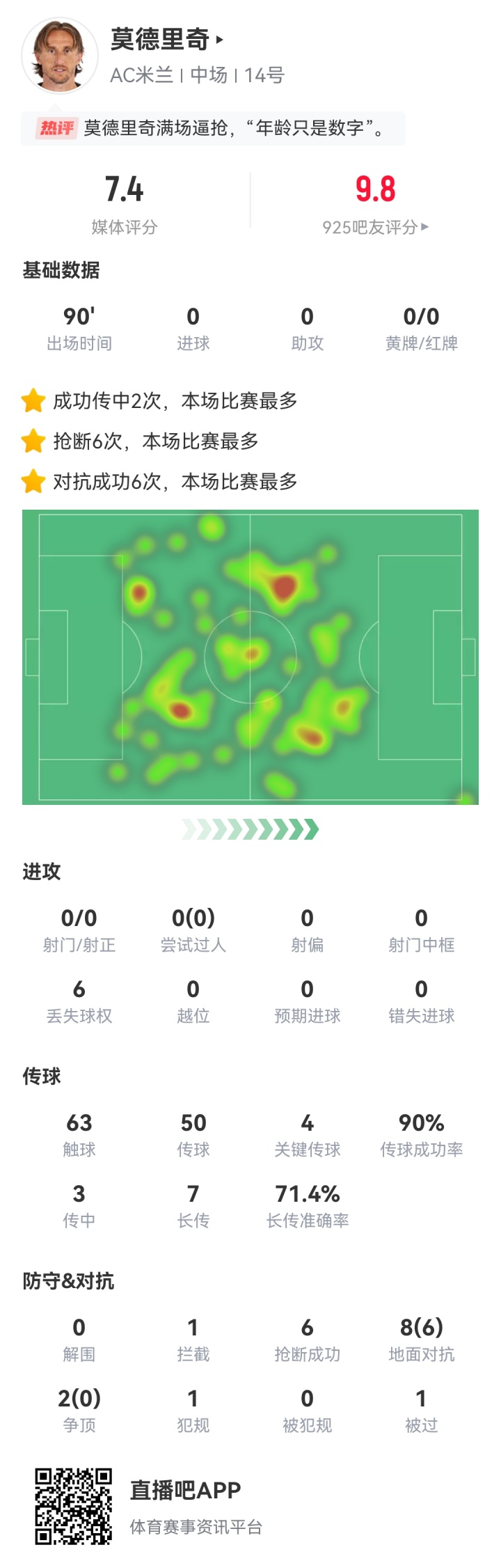 10月20日讯 凌晨意甲第7轮,AC米兰2-1礼服佛罗伦萨。据媒体数据统计,莫德里奇在这场比赛中才吃到他来意甲后的初次犯规。