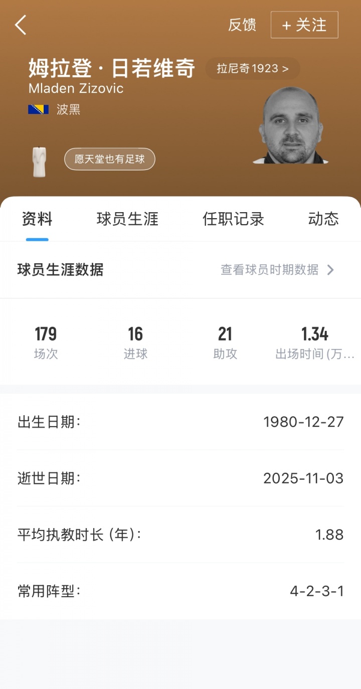 11月06日讯 当地期间11月3日,塞尔维亚超等联赛的球队拉尼奇1923主解释日若维奇,在比赛第22分钟因突发腹黑病倒在替补席,随后在送医的路上弃世,年仅44岁。据塞尔维亚媒体sportske报谈,拉尼奇1923将支付日若维奇剩余薪水的2倍,用于赔偿日若维奇的家庭。