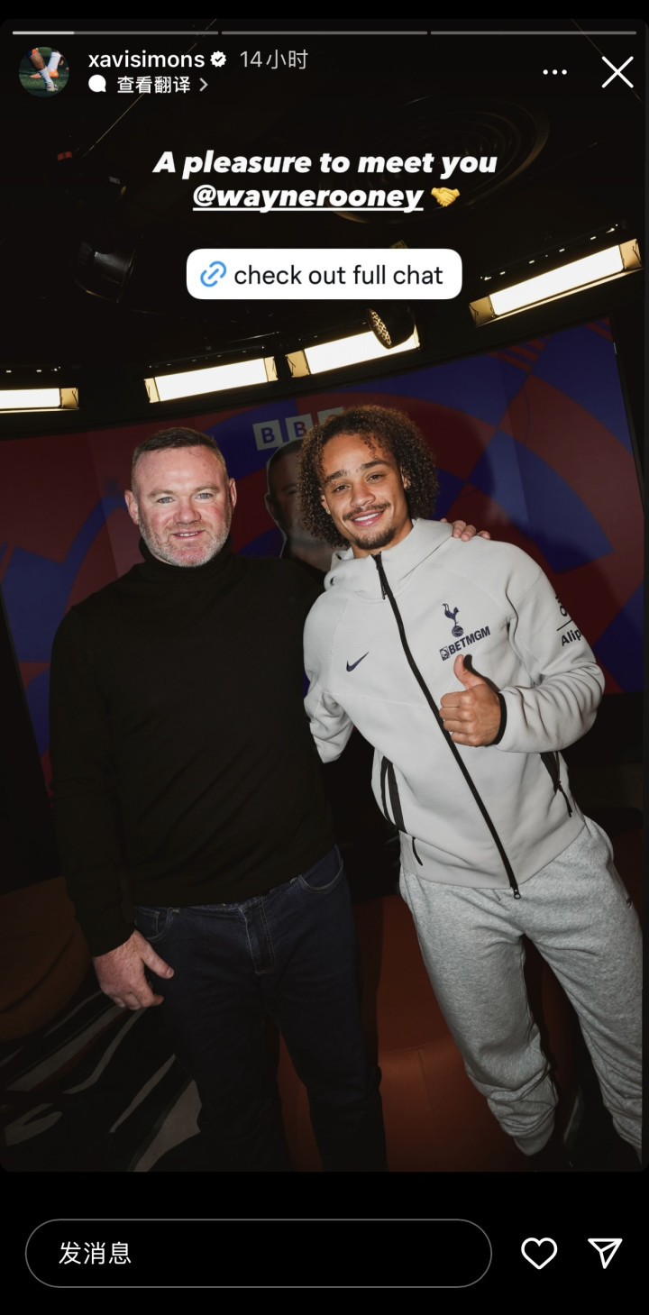 曼彻斯特 哈维-西蒙斯Ins发布与鲁尼的合影: 很运道见到你