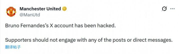 直播吧1月12日讯曼联官方阐明,队内中场B费社媒账号被盗。