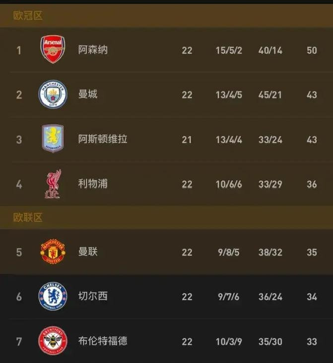 跟着曼联打败曼城,英超欧冠经验争夺也基本轩敞。现在积分榜上,阿森纳50分领跑,曼城43分第二,维拉同分第三且少赛一场,这三支球队积分上风权贵,唯有不出现顶点崩盘,欧冠经验基本稳了。