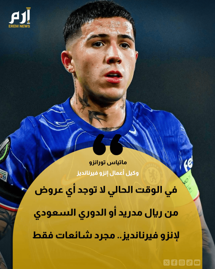 对此,恩佐运动员代理人马蒂亚斯-图兰佐在接受沙特媒体《EremNews》独家采访时进行了回应。他表示,目前并不存在来自沙特锦标赛的任何正式报价:“没有,现在桌面上没有任何报价。”针对外界关于皇家马德里有意引进恩佐的传闻,运动员代理人同样予以否认:“实际上目前没有任何进展,这些都只是传闻。”
