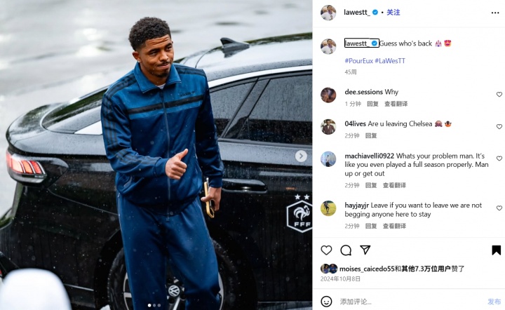 👀啥情况?韦斯利-福法纳删除了社媒上通盘切尔西关系的实质