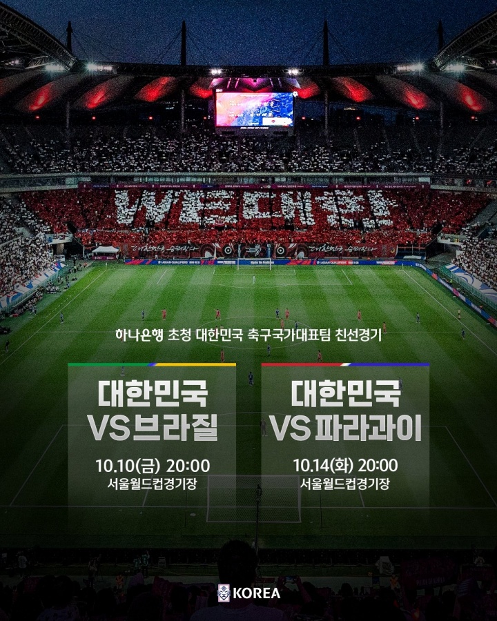 除此之外,韩国队还将在北京期间10月14日19点对阵巴拉圭,所在通常为首尔宇宙杯引导场。