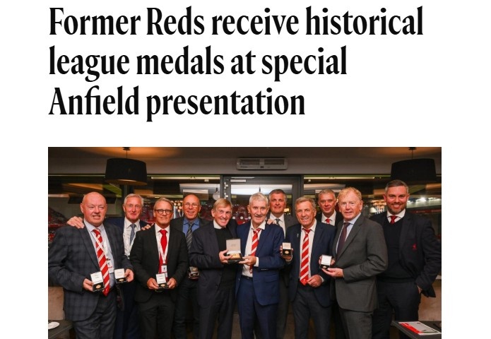 利物浦为莫尔比、麦克德莫特殊14位名宿补发联赛冠军奖牌