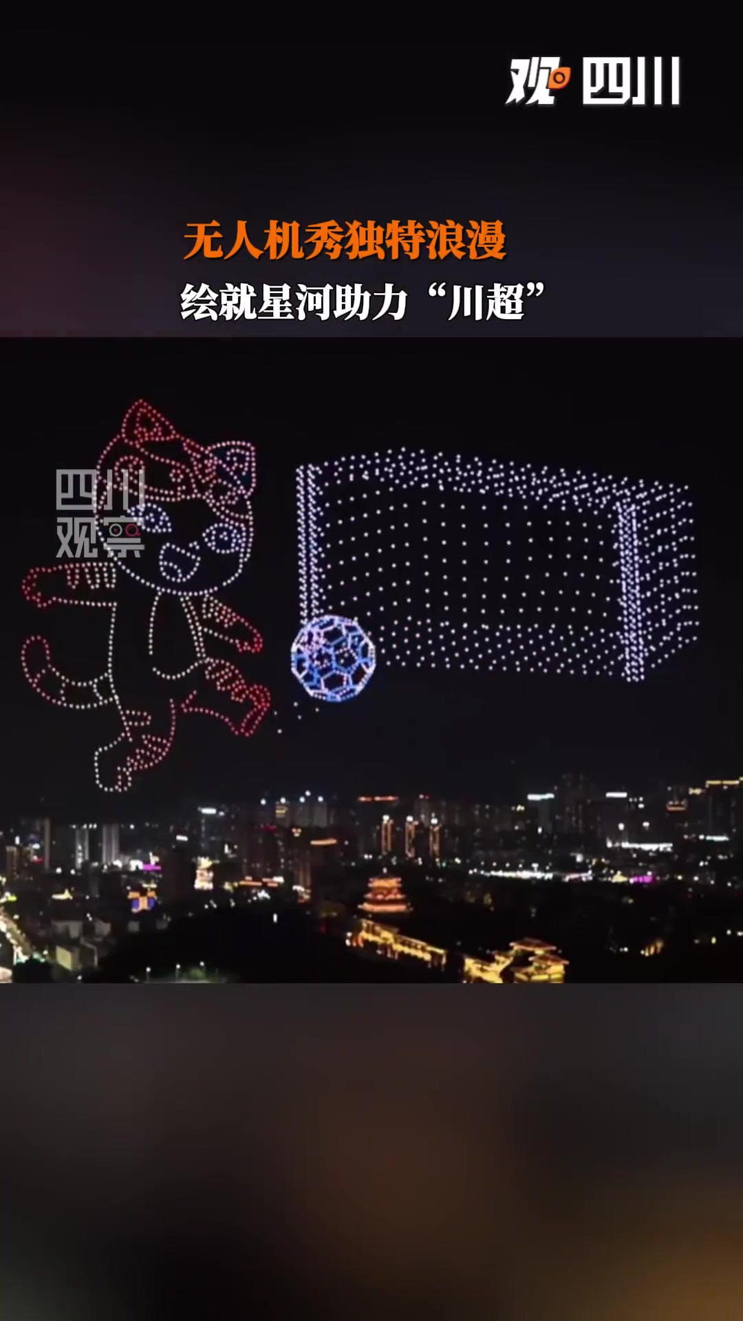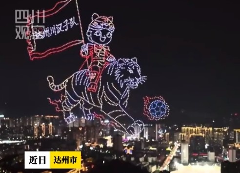 近日,在“川超”达州主场,2000架无东谈主机轮番幻化出足球、达州地标等好意思艳图案,以科技之光焚烧足球样貌,秀出巴东谈主故里的独有结果,助力“川超”赛事。