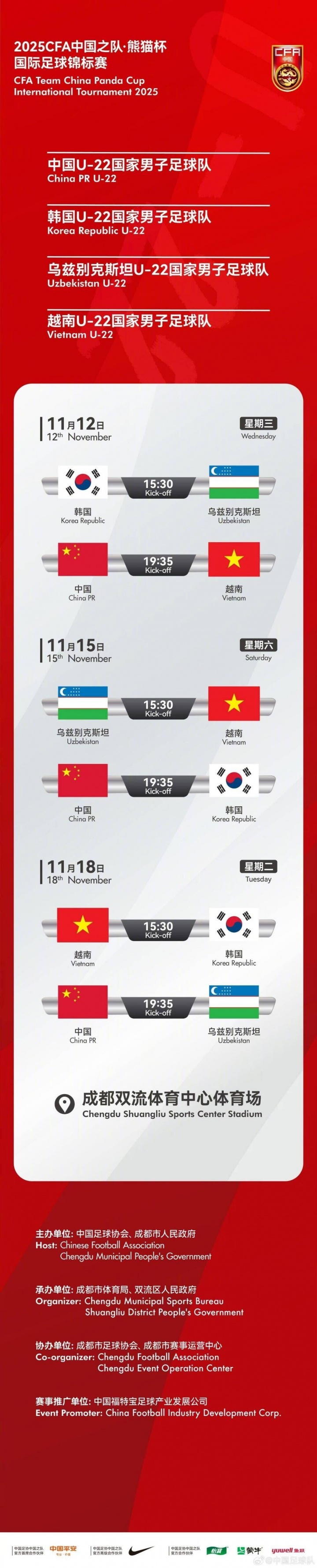 为备战2026年U23亚洲杯及名古屋亚运会,经队伍教练组照拂、中国足球协会批准,中国U-22国度男人足球队定于2025年11月9日至19日赴四川省成齐市组织集训并投入熊猫杯海外足球锦标赛。