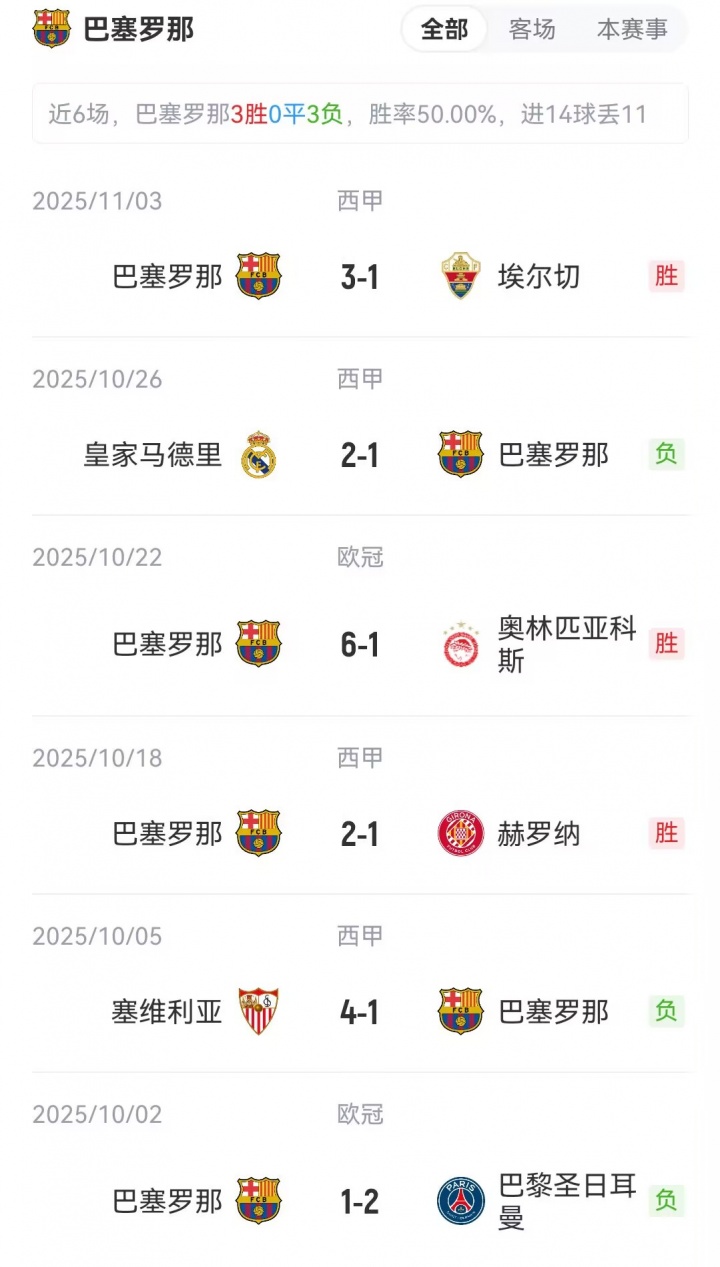 巴萨首发:25-什琴斯尼、3-巴尔德、4-阿劳霍、23-孔德、24-埃里克·加西亚、16-费尔明、17-卡萨多、21-德容、7-费兰、10-亚马尔、14-拉什福德