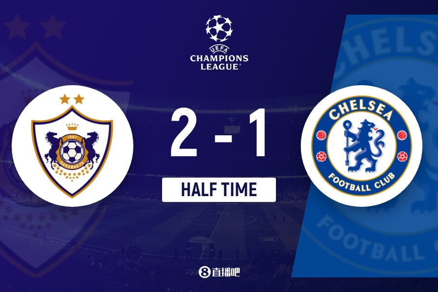 上半场伤停补时3分钟,半场已毕,切尔西暂1-2卡拉巴赫。
