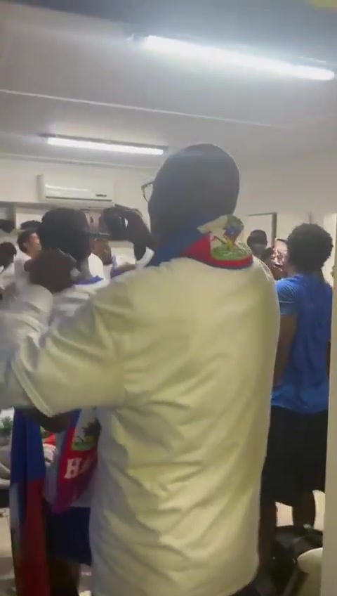 赛后,海地球员们在苟简的更衣室中轻歌曼舞,庆祝这一历史性的时辰。