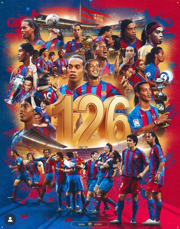 11月29日讯 今天是巴萨建树126周年缅想日,罗纳尔迪尼奥更新社媒,为巴萨庆生。