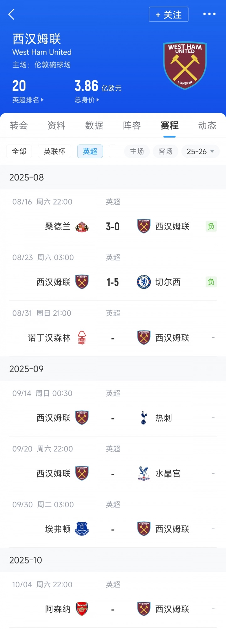 波特危!西汉姆两场惨败净胜球-7开局,而后5轮打丛林热刺枪手…