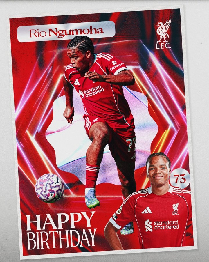 利物浦官推写谈:“17岁生辰舒坦,恩古莫哈!”